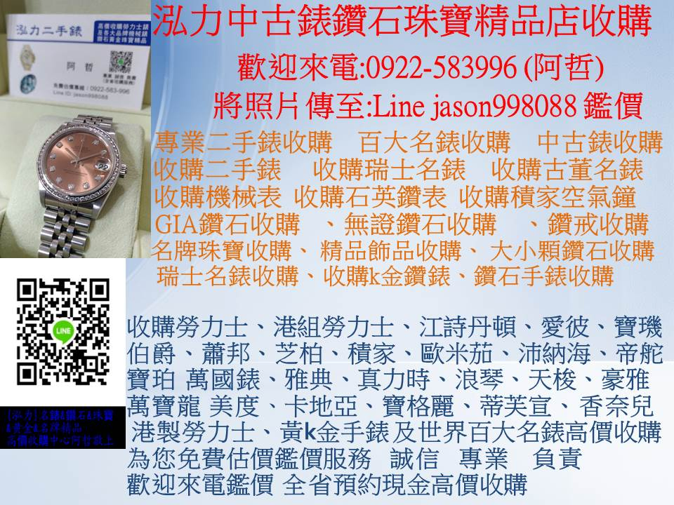 全省高價收購專線:0922583996 阿哲 泓力二手錶鑽石珠寶收購